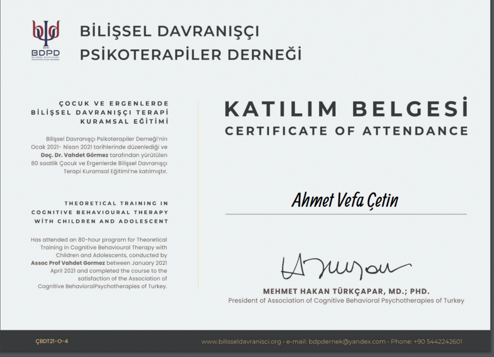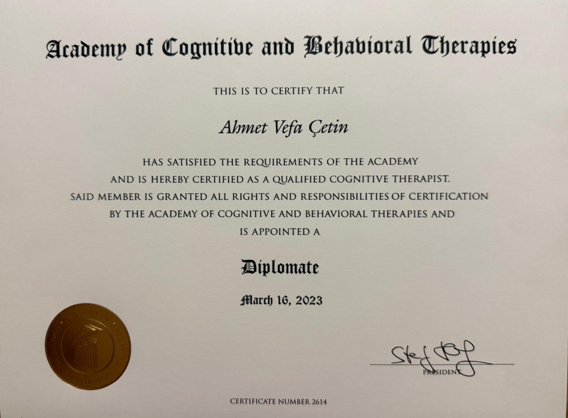Ahmet Vefa Çetin, Muğla Üniversitesi Psikolojik Danışmanlık ve Rehberlik bölümünden mezun olduktan sonra Üsküdar Üniversitesi’nde Klinik Psikoloji yüksek lisansını tamamlamıştır.