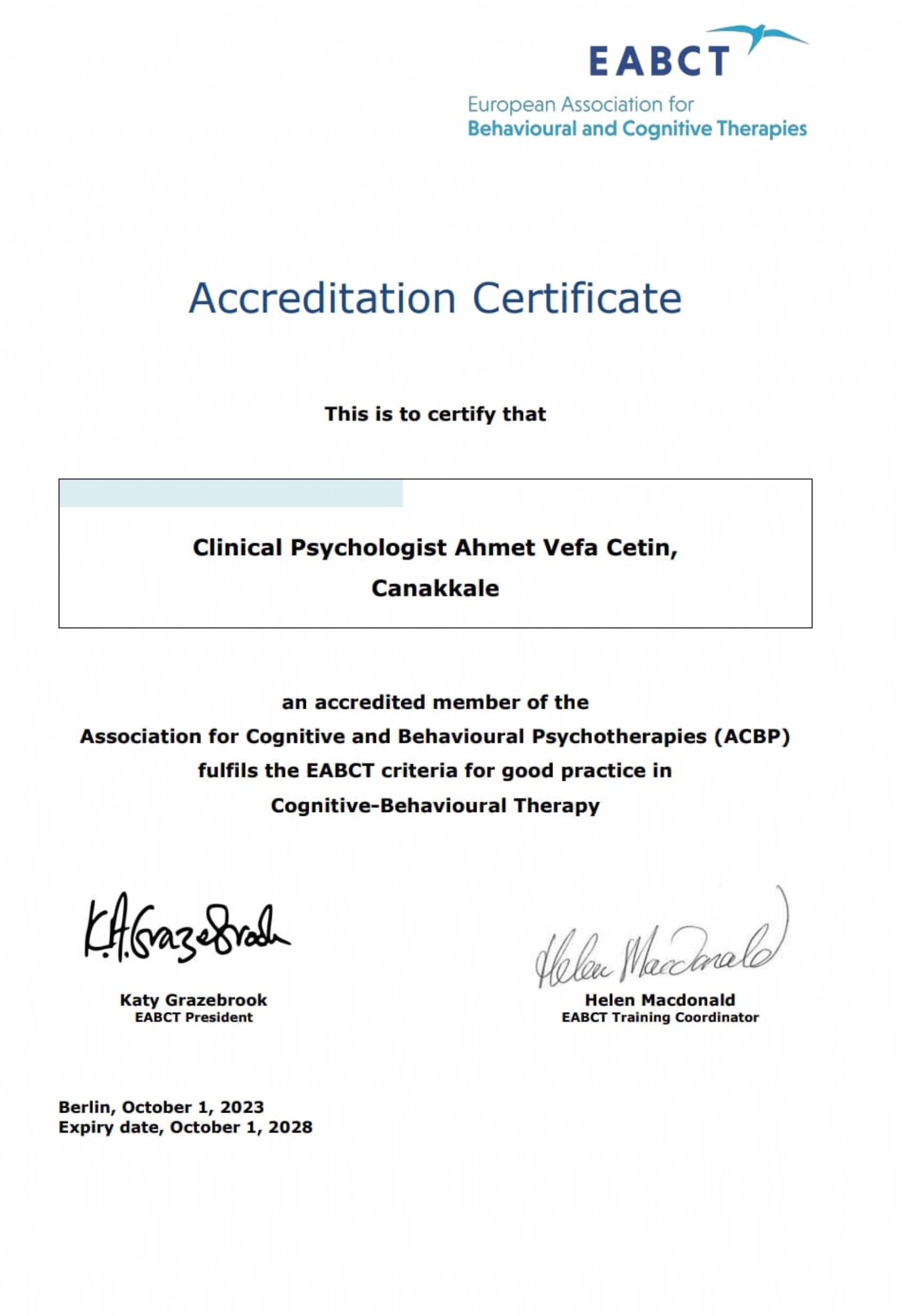 Terapi sürecinde bilimsel temellere dayanan ve etkinliği kanıtlanmış yaklaşımlarla çalışmayı önemseyen Çetin’in en sık başvurduğu yöntemler arasında Bilişsel Davranışçı Terapi (BDT) ve Şema Terapi yer almaktadır. Lisans eğitimi sonrasında başladığı ve yaklaşık dört yıl süren süreç sonunda, The Academy of Cognitive & Behavioral Therapies (ACT) ve The European Association for Behavioural and Cognitive Therapies (EABCT) tarafından akredite edilerek sertifikalı terapist unvanını almıştır. Bu alanda Türkiye’de sayılı uzmanlardan biridir.